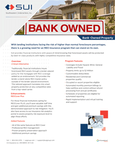 SUI provides financial institutions with peace of mind knowing that foreclosed assets will be protected by best-in-class products with highly competitive insurance rates.