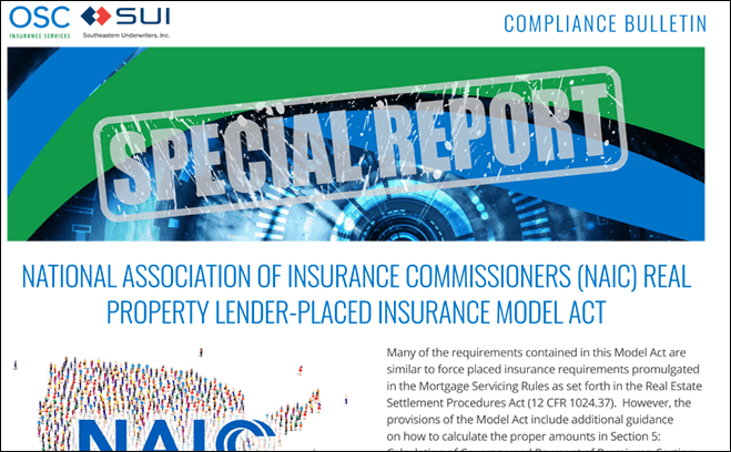 SUI Compliance Insight Bulletin: NAIC Real Property Lender-Placed Insurance Model Act