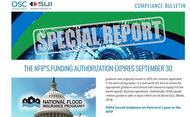 SUI Compliance Insight Bulletin: The NFIP’s Funding Authorization Expires September 30