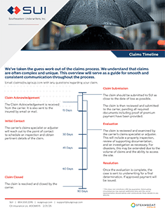 If you feel you may need further help at any point with the claims process, please reach out to claims@suigroup.com or call (800) 777-1815. Please remember, a claim is not considered received by the carrier until it has been reported to them directly.